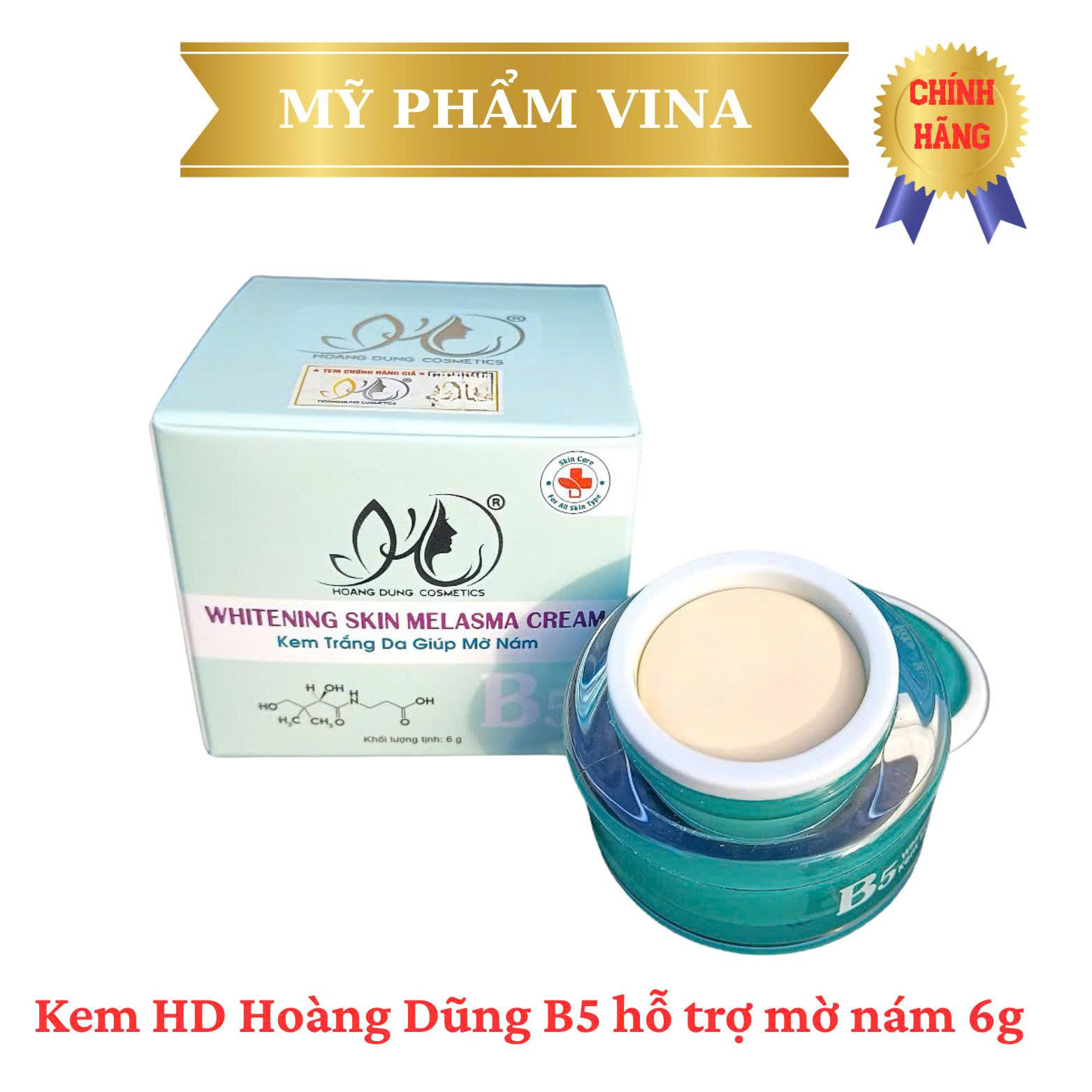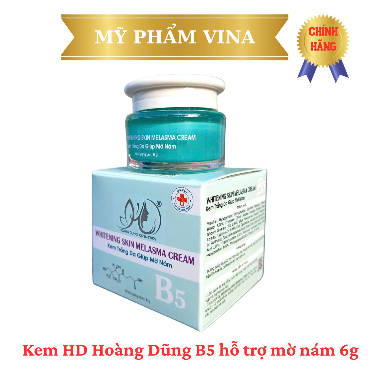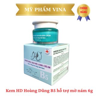 Kem Hoàng Dũng B5 Whitening Skin Melasma Cream là sản phẩm dưỡng da giúp hỗ trợ làm mờ nám, cải thiện làn da và dưỡng da sáng mịn tự nhiên. Với công thức chứa Vitamin B5 kết hợp các dưỡng chất chăm sóc da, sản phẩm giúp cấp ẩm, phục hồi làn da và hỗ trợ cải thiện các vùng da sạm màu khi sử dụng đều đặn. ✨ Công dụng nổi bật ✔ Hỗ trợ làm mờ nám và tàn nhang Giúp cải thiện tình trạng da bị sạm màu, nám và tàn nhang, giúp da trông sáng và đều màu hơn. ✔ Dưỡng trắng và cải thiện làn da Hỗ trợ làm sáng da, giúp làn da tươi tắn và rạng rỡ hơn. ✔ Cấp ẩm và phục hồi da Vitamin B5 giúp cung cấp độ ẩm, hỗ trợ phục hồi làn da khô, giúp da mềm mại và mịn màng. ✔ Giúp da đều màu hơn Hỗ trợ cải thiện các vùng da không đều màu, giúp da trông sáng khỏe và tự nhiên hơn. ✔ Chất kem mịn, dễ thẩm thấu Kem thấm nhanh vào da, không gây bết dính, phù hợp sử dụng hằng ngày. ???? Thành phần nổi bật • Vitamin B5: cấp ẩm, hỗ trợ phục hồi và làm dịu da • Các dưỡng chất chăm sóc da: hỗ trợ cải thiện sắc tố và giúp da sáng hơn Phù hợp với mọi loại da ???? Cách sử dụng 1️⃣ Làm sạch da mặt. 2️⃣ Lấy một lượng kem vừa đủ. 3️⃣ Thoa đều lên vùng da cần chăm sóc. 4️⃣ Massage nhẹ nhàng để kem thẩm thấu tốt hơn. ???? Sử dụng 2 lần mỗi ngày (sáng và tối) để đạt hiệu quả tốt hơn.