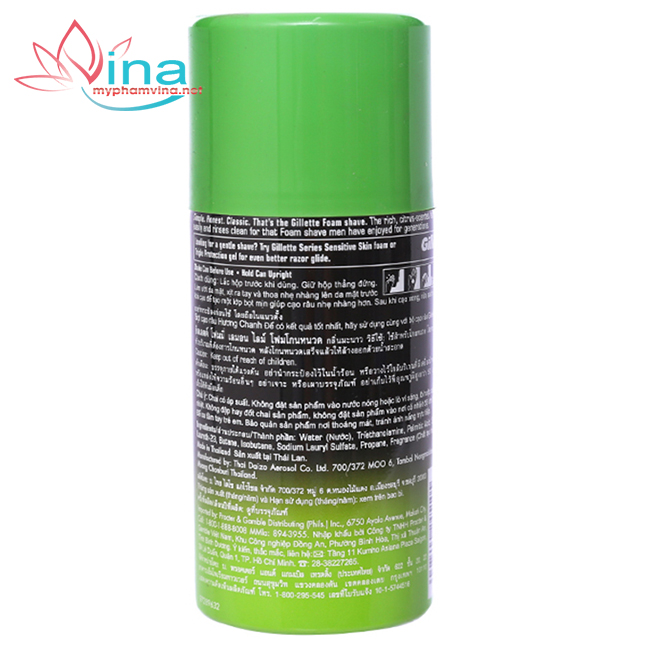 Bọt cạo râu Gillette hương Chanh chứa chất Glycerin giúp giữ độ ẩm của làn da, se lỗ chân lông và ngăn ngừa viêm nhiễm cho da.