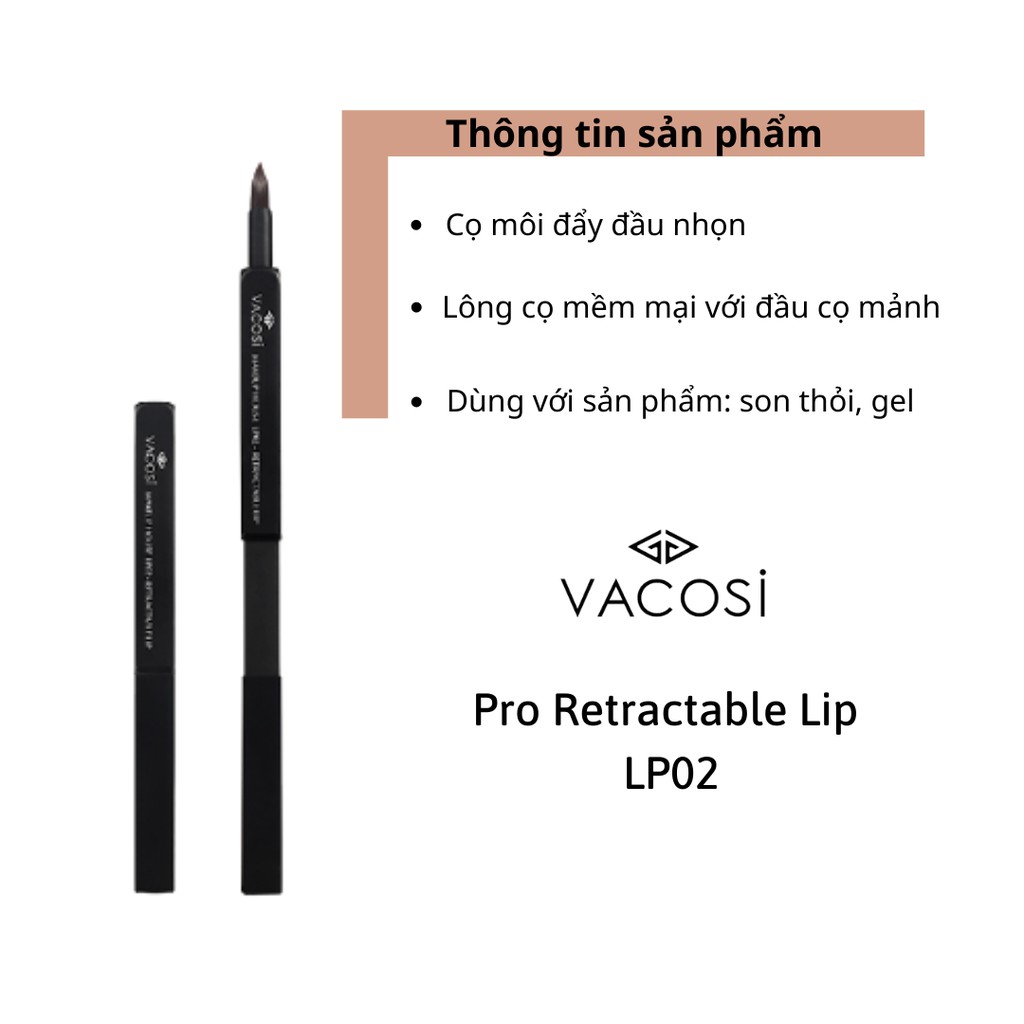 Cọ đẩy Vacosi Pro với thiết kế dạng nắp đẩy tiện lợi, giúp bảo quản đầu cọ không bị hư hại sau khi sử dụng.