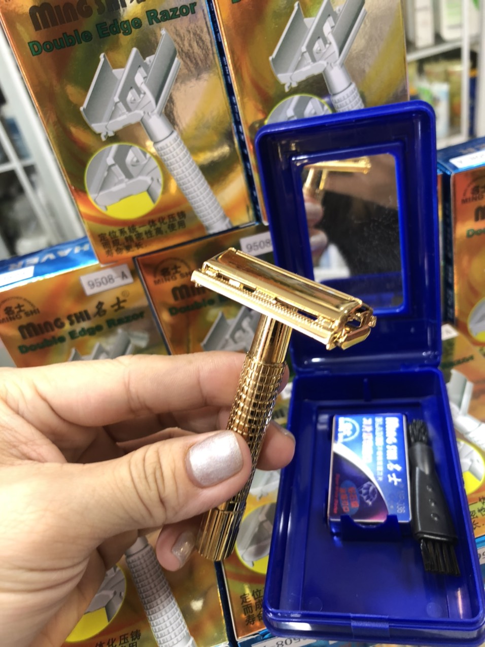 - bộ sản phẩm bao gồm: 01 dao cạo râu + 01 lưỡi dao lam + 01 hộp đựng có gương.