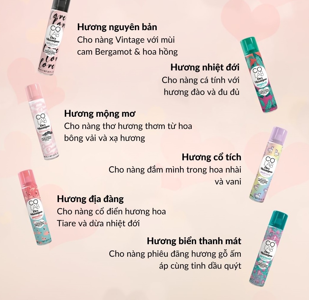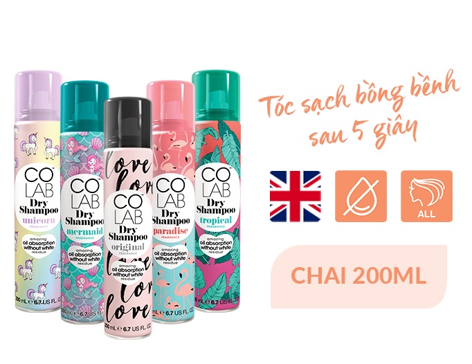 Colab là loại dầu gội khô tối ưu cho mái tóc, sản phẩm phù hợp với mọi loại tóc.