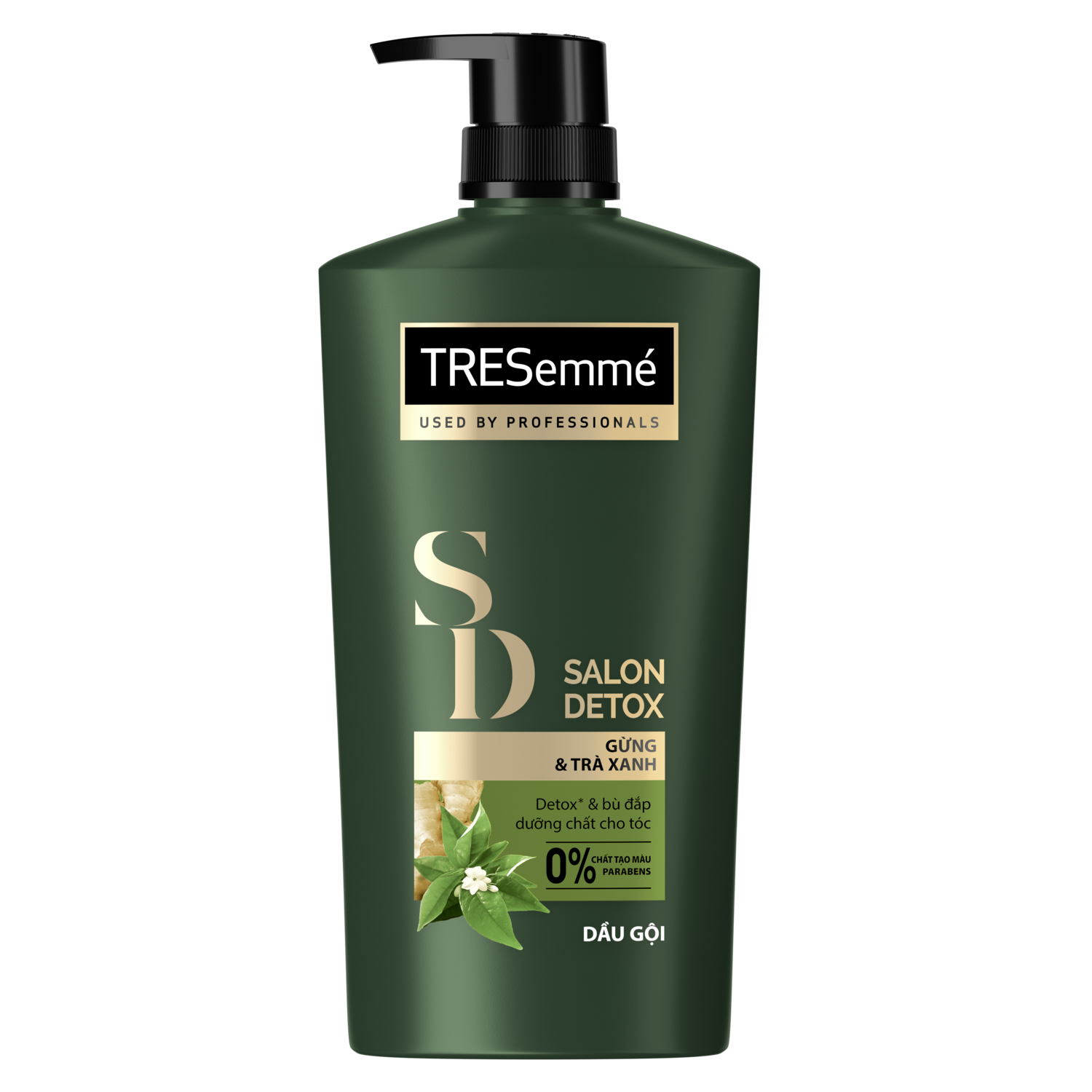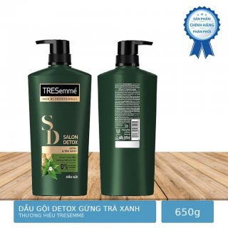 - Dầu Gội Tresemmé Salon Detox Gừng & Trà Xanh Giúp Tóc Chắc Khoẻ 640g với công thức chứa thành phần thiên nhiên gồm gừng và trà xanh, giúp khôi phục lại vẻ đẹp chắc khoẻ tự nhiên cho mái tóc cùng cảm giác thư thái khi gội, mùi hương sang trọng cả ngày dài.
