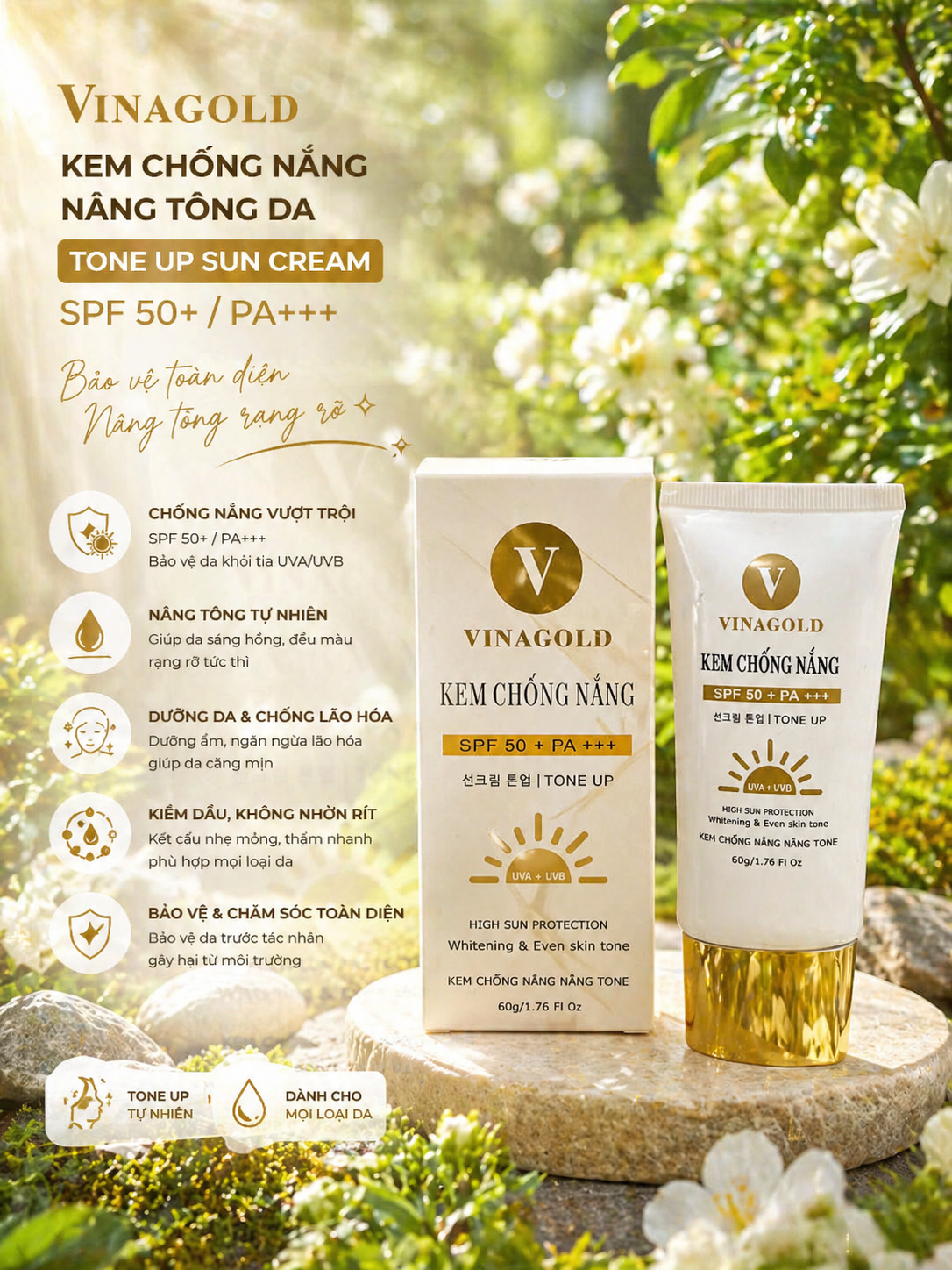 Tone Up Sun Cream hiệu chỉnh tông da đều màu & sáng hồng rạng rỡ. Đặc biệt thích hợp cho những làn da xanh xao, không đều màu.