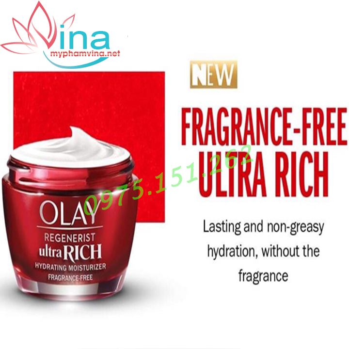 Kem Dưỡng Ẩm Làm Săn Chắc Da Olay Regenerist Ultra Rich Hydrating Moisturizer Fragrance Free (không mùi) 48g dạng kem này ngay lập tức cấp nước và làm săn chắc làn da của bạn , Bên cạnh công dụng chính là chống lão hoá , có chức năng cấp và giữ ẩm sâu đến tận 10 lớp đem lại cho bạn một bề mặt da mịn màng và đều màu chống khô và bông tróc
