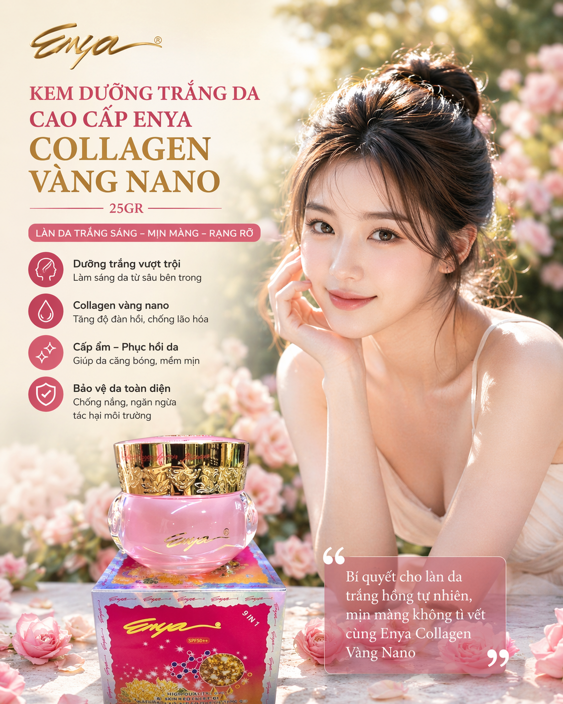 Kem dưỡng trắng da cao cấp enya collagen vàng nano 25gr