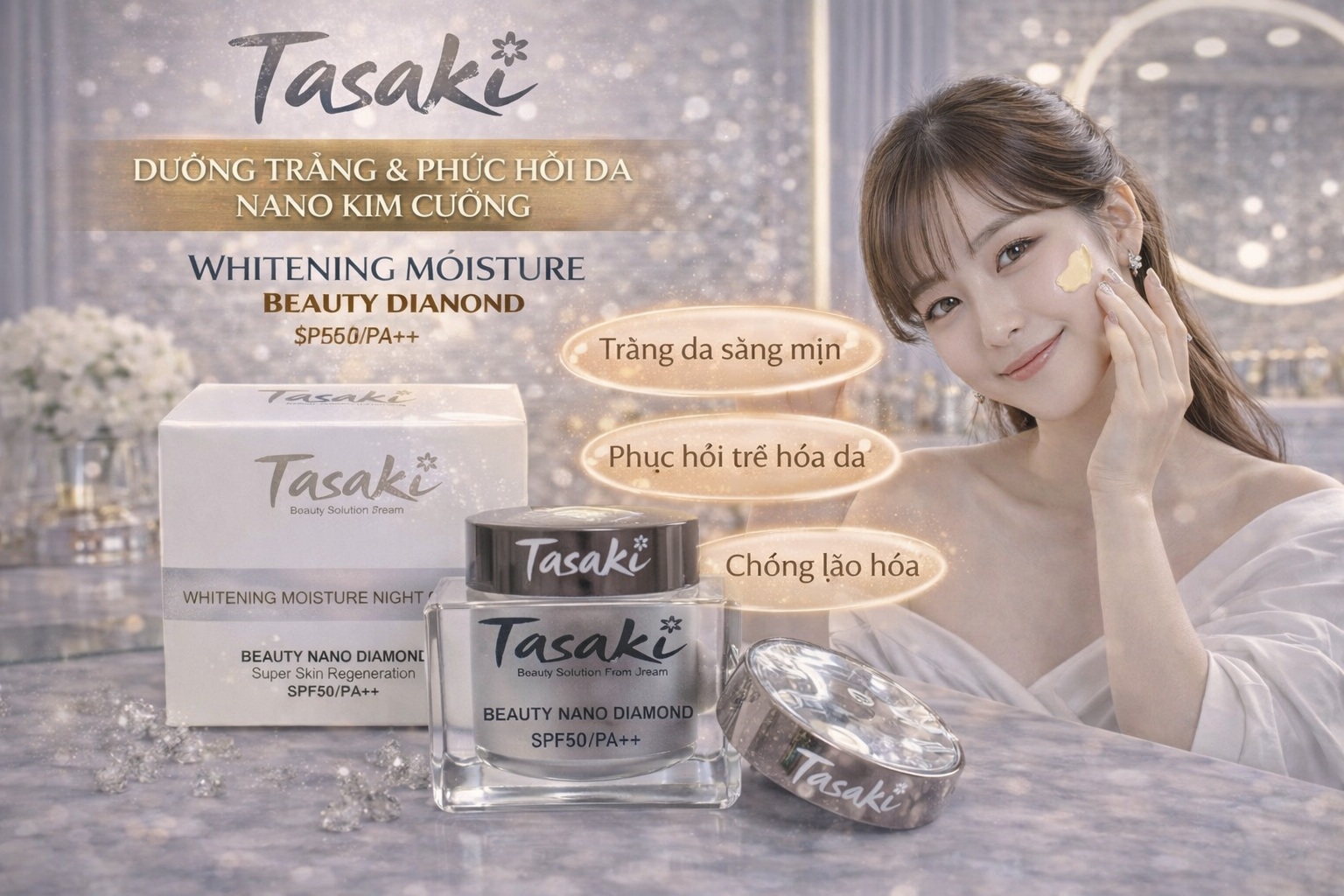 Kem Tasaki dưỡng trắng và phục hồi da Nano Kim Cương 25GR - Kem dưỡng trắng da ban đêm Tasaki