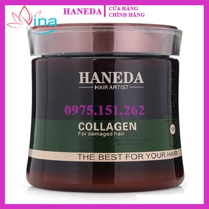 – Hấp dầu phục hồi tóc Haneda Collagen với tinh chất collagen, keratine, các vitamin thẩm thấu sâu giúp phục hồi lõi tóc hư nát và nuôi dưỡng cấu trúc tóc. Nét ưu việt của dòng sản phẩm này là giúp tóc hấp thụ nhanh mà không gây nhờn dính.