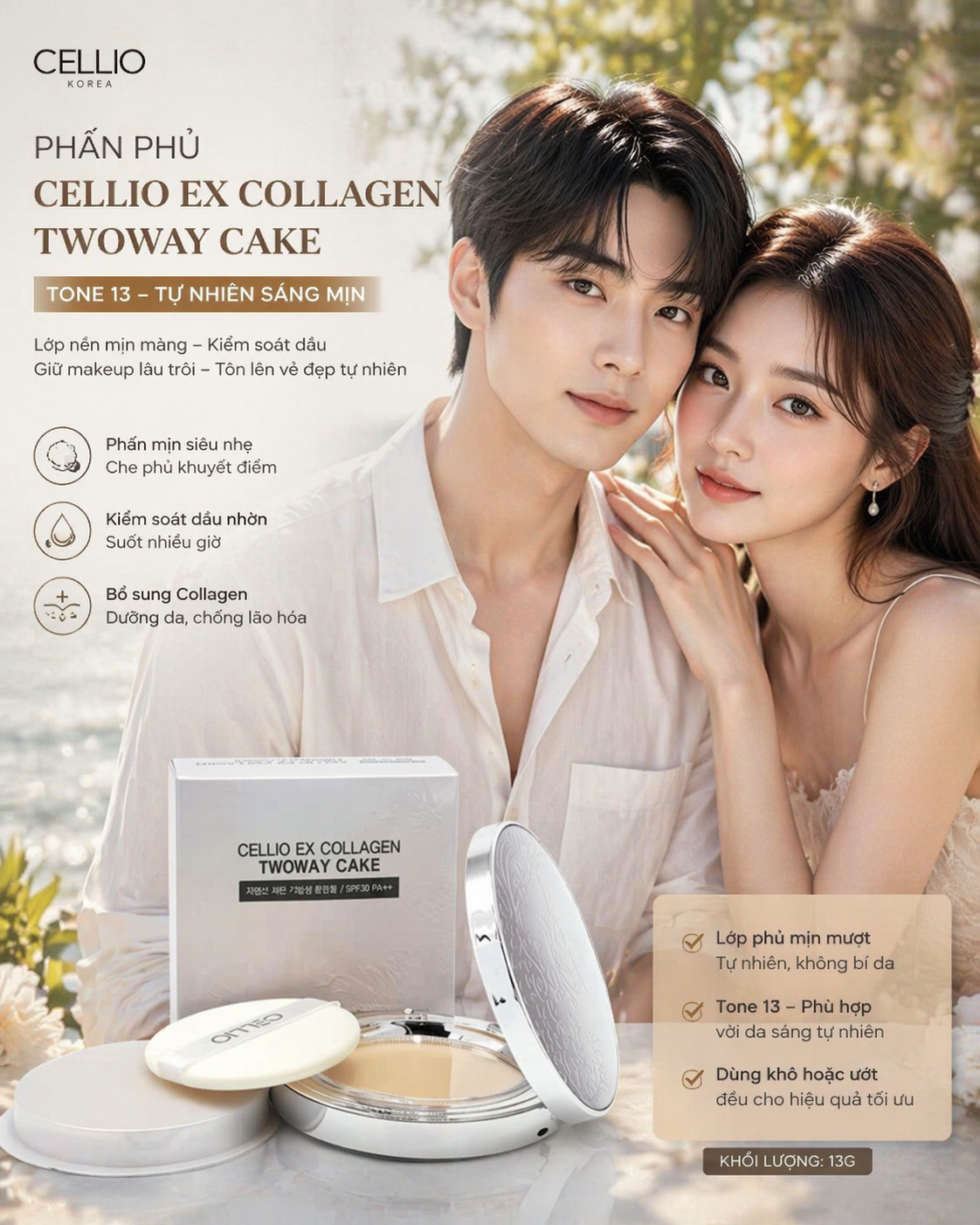Phấn Phủ Cellio Ex Collagen Twoway Cake 13gr - Tone 13