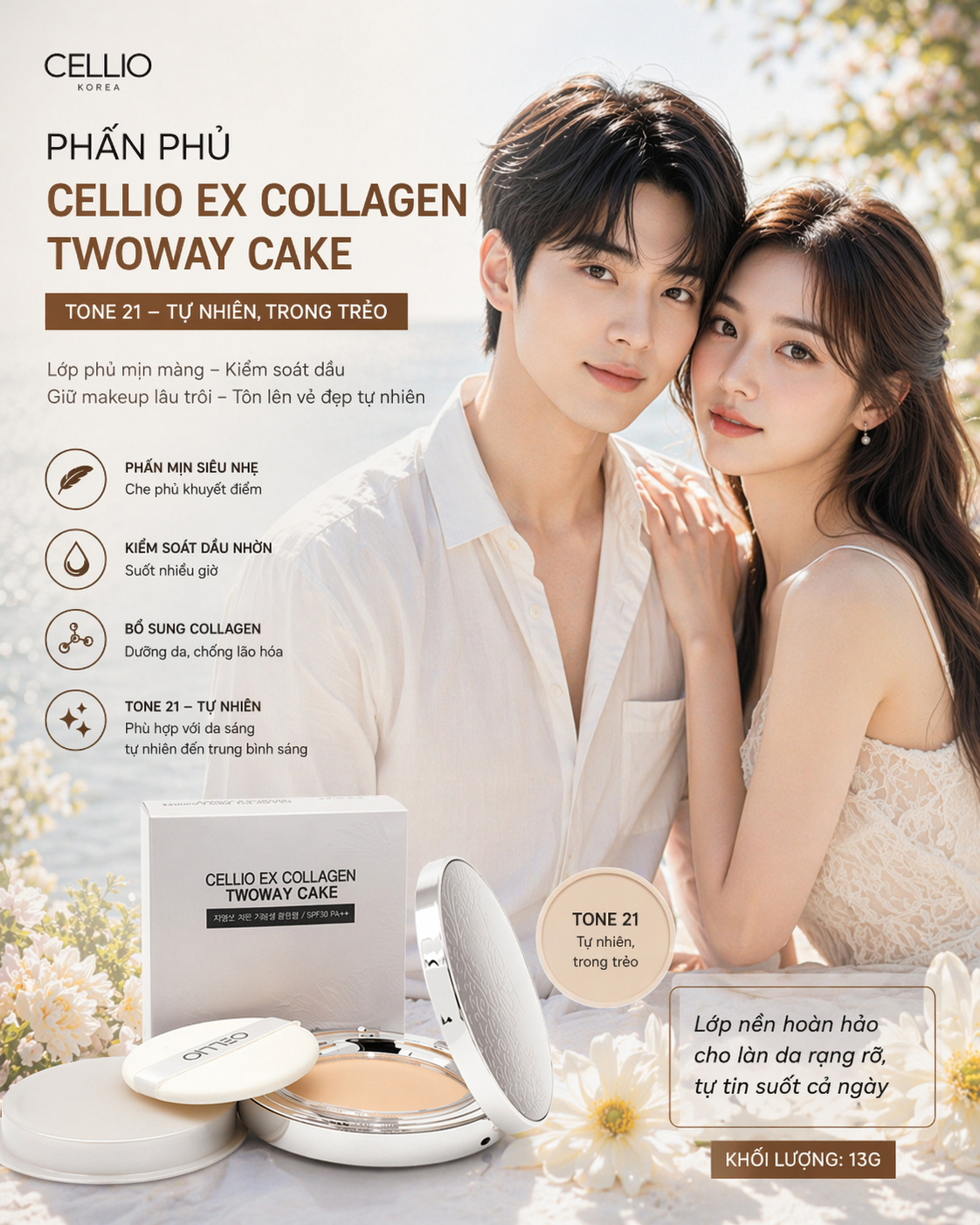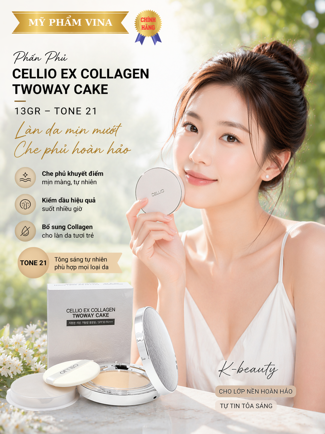 Phấn Phủ Cellio Giúp cho sự phát triển tái tạo da, chống lại hiện tượng lão hóa, tăng khả năng đàn hồi và độ láng mượt của làn da, giúp bạn luôn giữ mãi làn da mềm mại mịn màng tràn đầy sức sống.