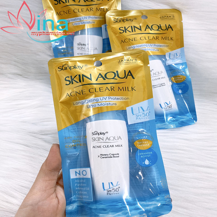 Sunplay Skin Aqua Acne Clear Milk – Sữa chống nắng dưỡng da ngừa mụn: