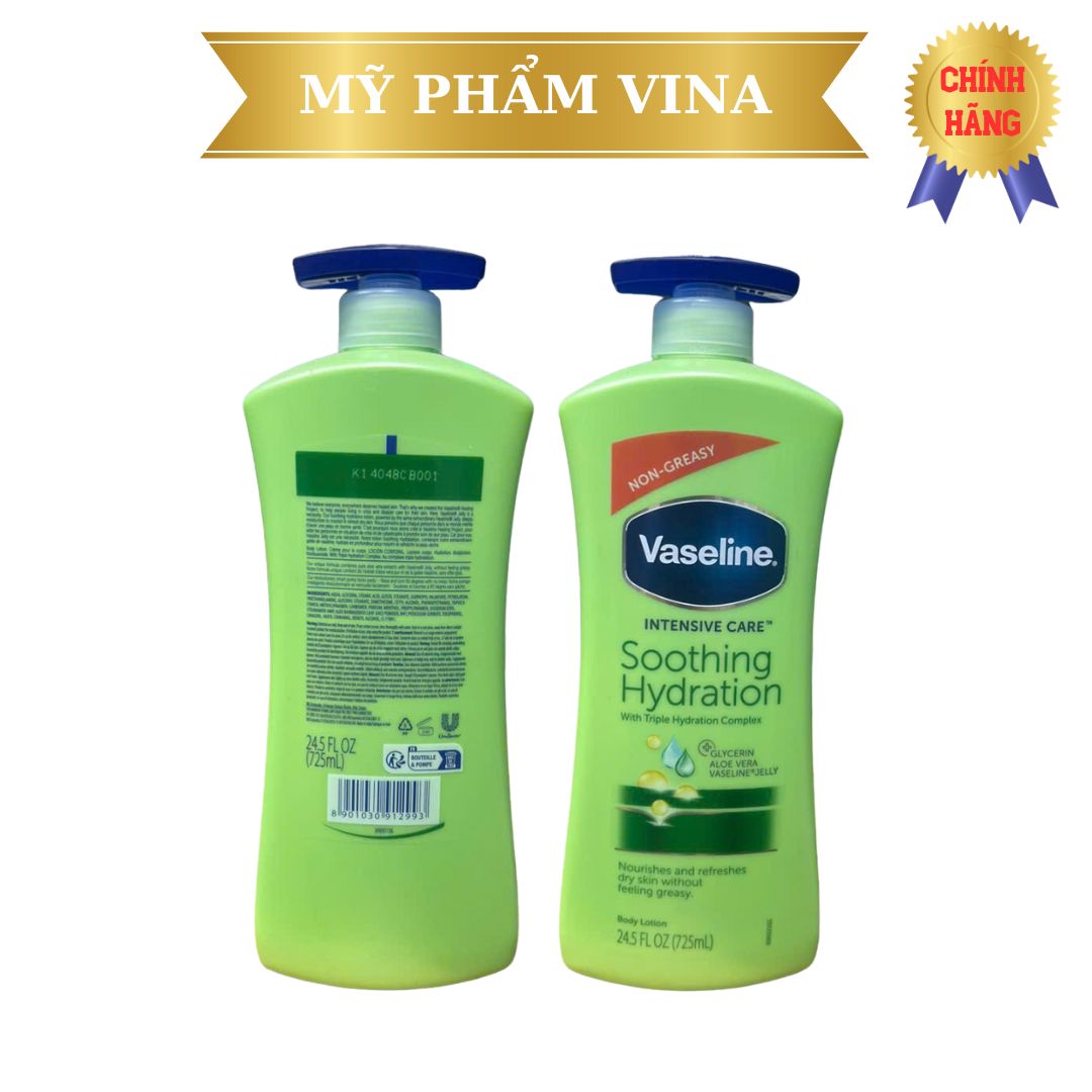 Vaseline Aloe Fresh Hydrating Body Lotion (chai xanh lá): Làm mềm mượt và mát da do có chiết xuất từ cây lô hội. Hấp thụ vào da một cách nhanh chóng để cung cấp độ ẩm cho da mà không bị bết dính.