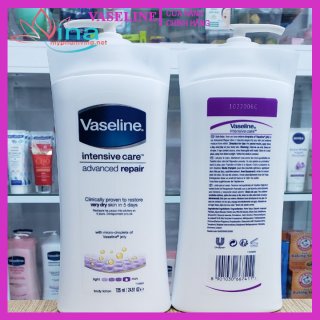 Sữa dưỡng thể Vaseline Intensive Care Advanced Repair có độ ẩm gấp 3 lần các sản phẩm dưỡng da thông thường, giúp cải thiện làn da khô ráp trở nên mềm mại, mịn màng hơn. Sản phẩm có hương thơm nhẹ nhàng mang đến cho bạn cảm giác thư giãn thoải mái. Sữa dưỡng thể Vaseline Intensive Care Advanced Repair được thiết kế giúp làm mềm và cải thiện làn da khô trong 5 ngày mà không để lại cảm giác dính hoặc nhờn.