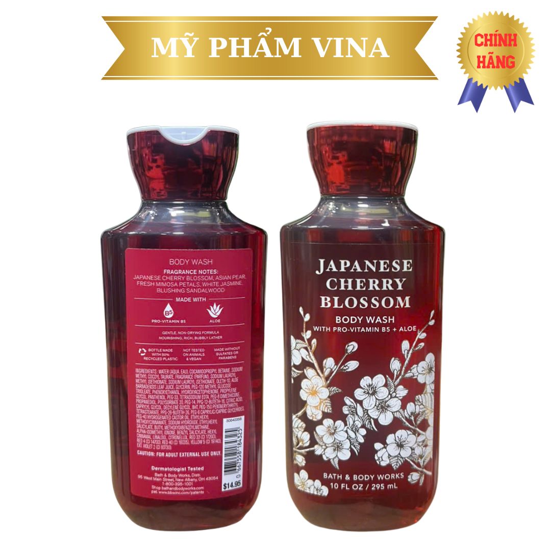 - Sữa Tắm - Japanese Cherry Blossom - Bath & Body Works Shower Gel được chiết xuất từ các loài hoa và vitamin thiên nhiên, cung cấp ẩm và dưỡng chất giúp da mềm mịn, đồng thời tăng cường sức sống cho làn da căng mượt, trẻ trung, làm chậm quá trình lão hóa da.