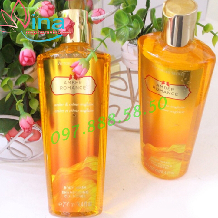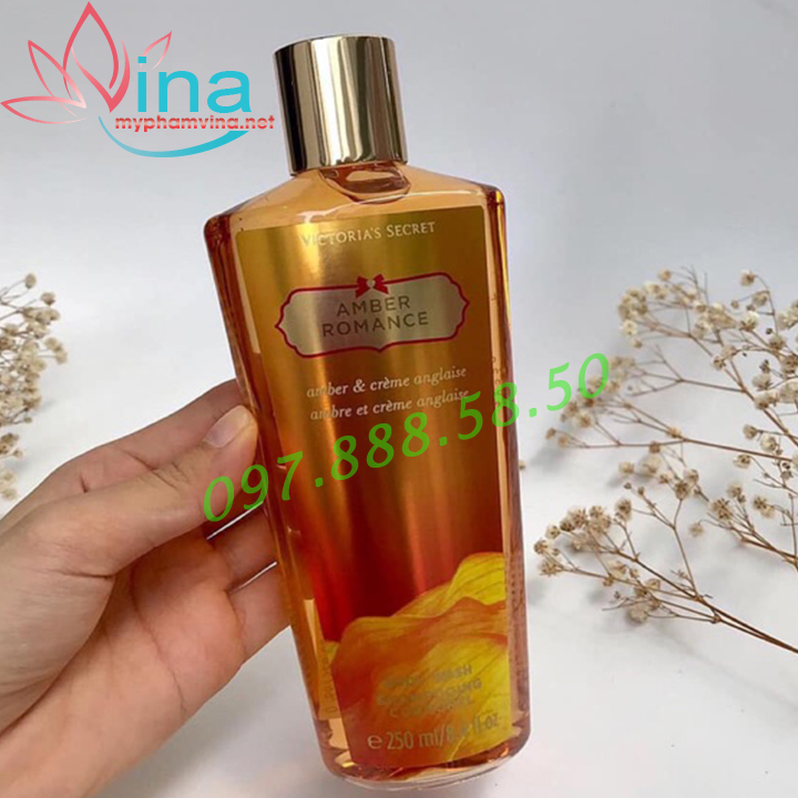 - Sữa tắm Victoria’s Secret Amber Romance được lấy cảm hứng từ một chuyện tình lãng mạn, với màu sáng hồng của hoa lê và sự tuyệt vời của hoa ly tạo nên một hương hoa thơm ngọt ngào hoàn hảo đầy quyến rũ.