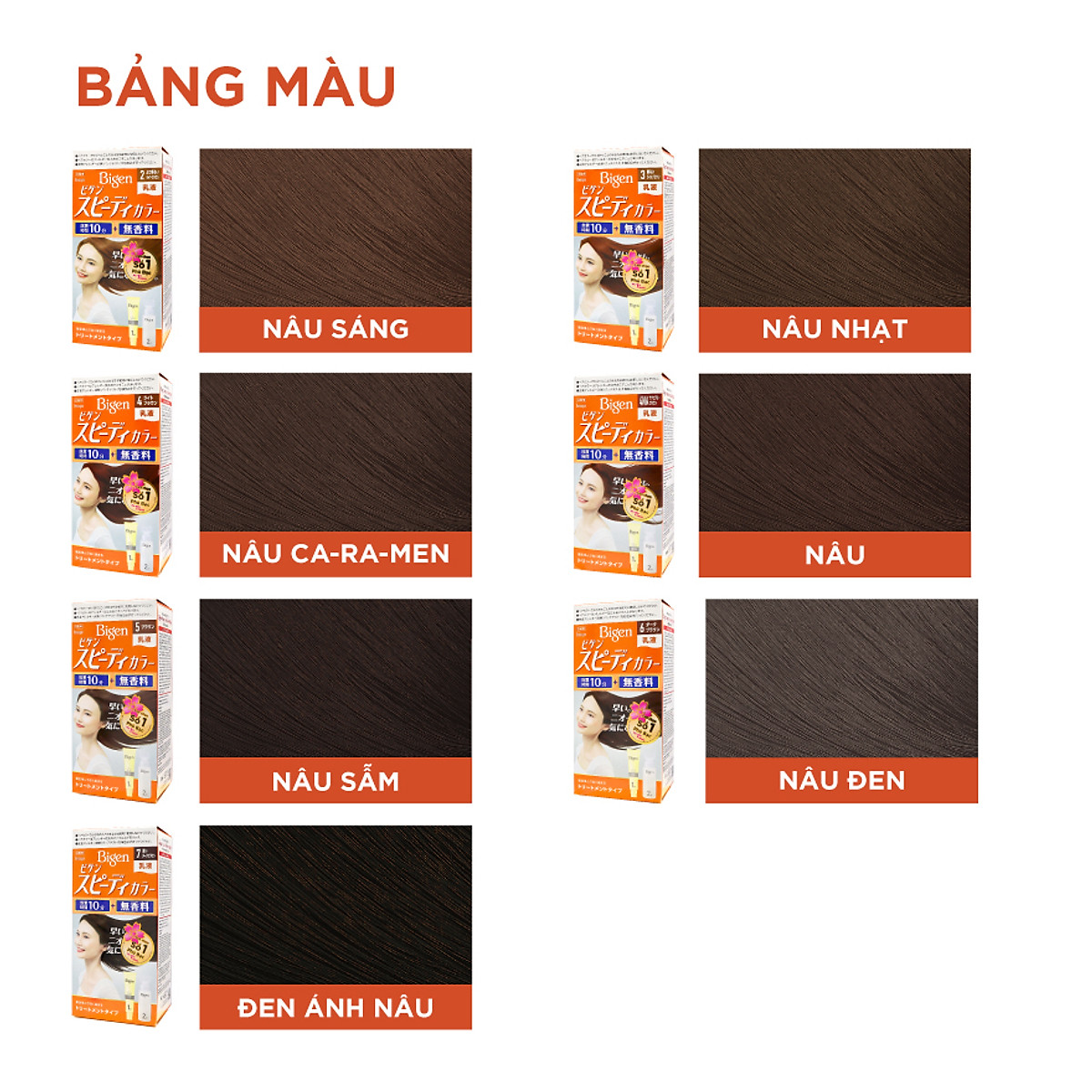 - Với Bigen, bạn hoàn toàn có thể yên tâm và hài lòng với màu tóc mới của mình mà không tốn thời gian, vừa tiết kiệm mà đảm bảo thuốc chuẩn 100% xuất xứ nội địa Nhật.