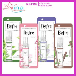 - Xịt Khử Mùi Refre Natural được chiết xuất từ thành phần thiên nhiên lành tính với 6 mùi hương: trà xanh, hương thảo, cúc la mã, ngọc lan tây, hồng mộc lan, hương gỗ có khả năng khử mùi hiệu quả cho bạn thêm phần tự tin thể hiện phong cách riêng của chính mình. Refre với kết cấu các hạt phấn siêu nhỏ, cực mịn sẽ giúp hút ẩm một cách nhanh chóng đồng thời hỗ trợ se nhỏ lỗ chân lông, giữ cho vùng da dưới cánh tay bạn luôn khô thoáng, sáng mịn suốt cả ngày dài.