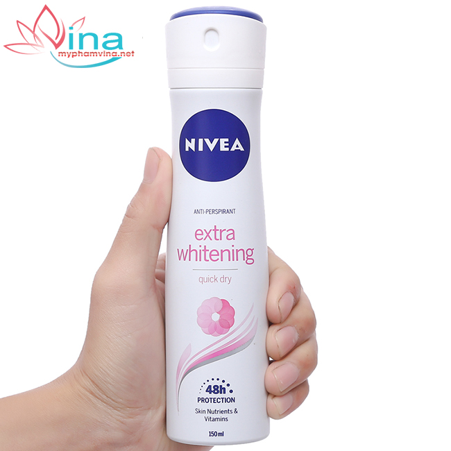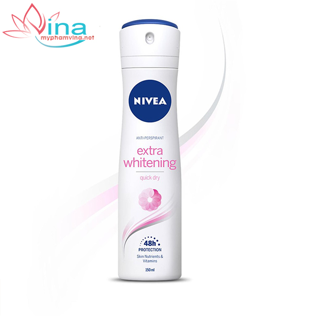 Xịt khử mùi trắng mịn mờ vết thâm Nivea Extra Whitening Quick Dry 150ml