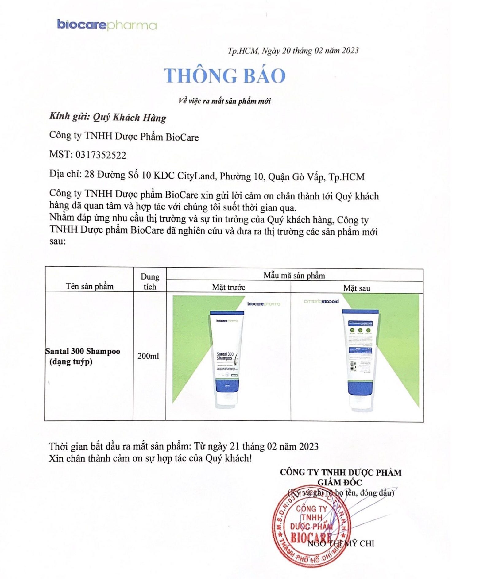 Santal 300 Shampoo có độ PH chuẩn 6,0 cực kì phù hợp với da đầu, kể cả da nhạy cảm, bạn có thể sử dụng mỗi ngày mà không lo bị khô tóc.
