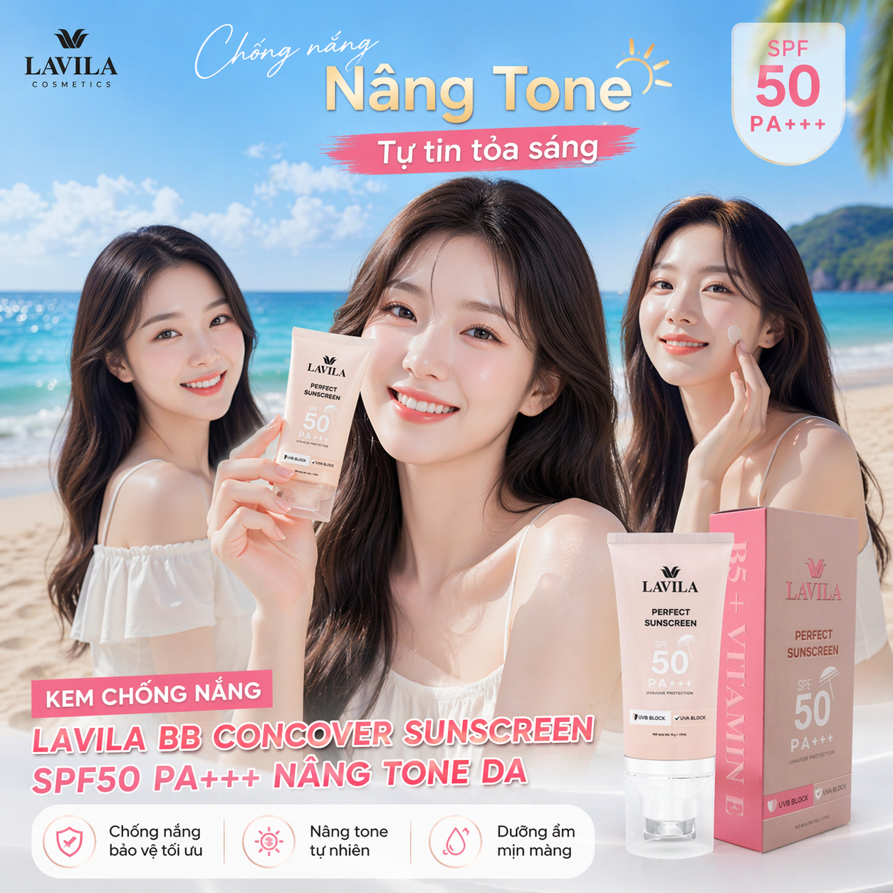 Kem Chống Nắng Lavila BB Concover Kem Chống Nắng SPF50 PA+++ Nâng Tone Da 50G.