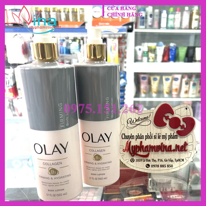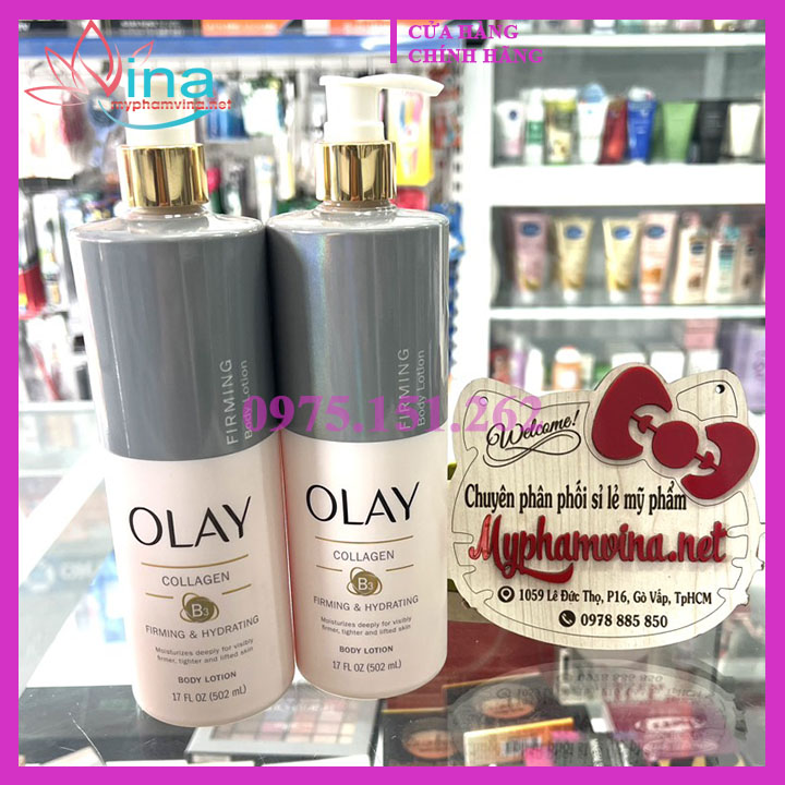 Dưỡng Thể Olay Collagen B3 Firming & Hydrating Body Lotion 502mL (bản Mỹ) sữa siêu dưỡng ẩm dành cho da khô, dưỡng thể olay collagen thấm sâu qua lớp tế bào, để cải thiện làn da khô ráp, sần sùi, và giữ ẩm cho da suốt 24h, giúp da mềm mại và mịn màng.