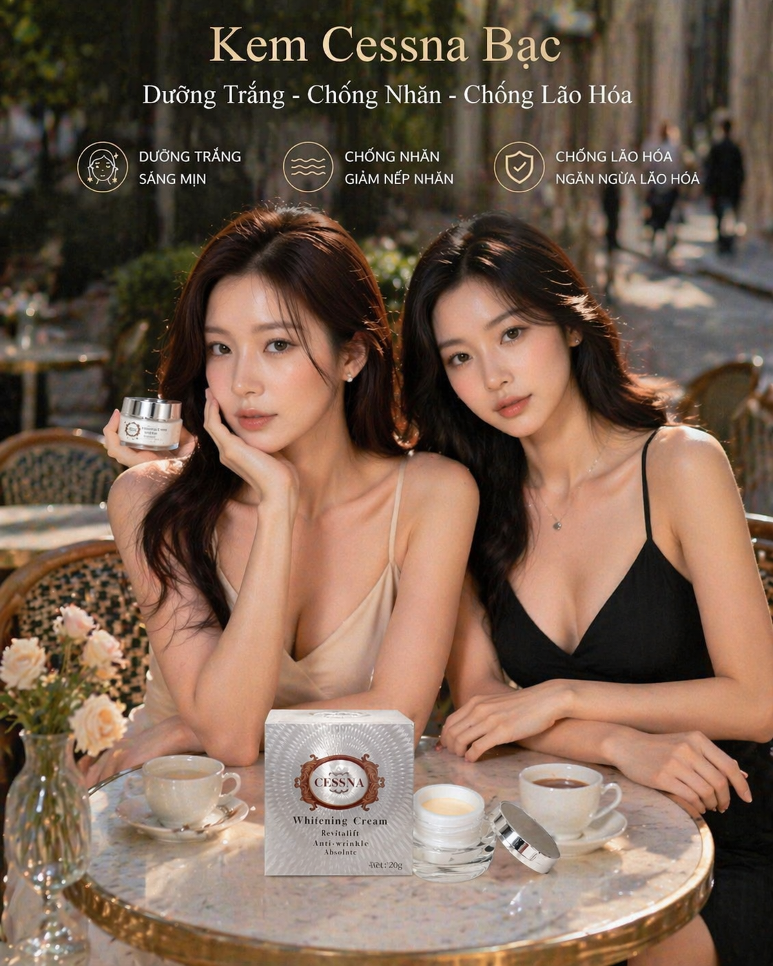 Kem dưỡng trắng da, giữ ẩm, chống nhăn, chảy xệ Cessna Whitening Cream - Bạc - 30g