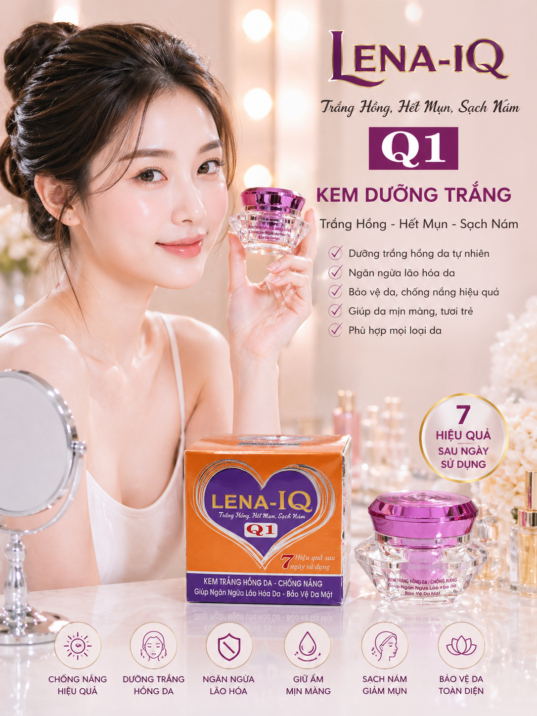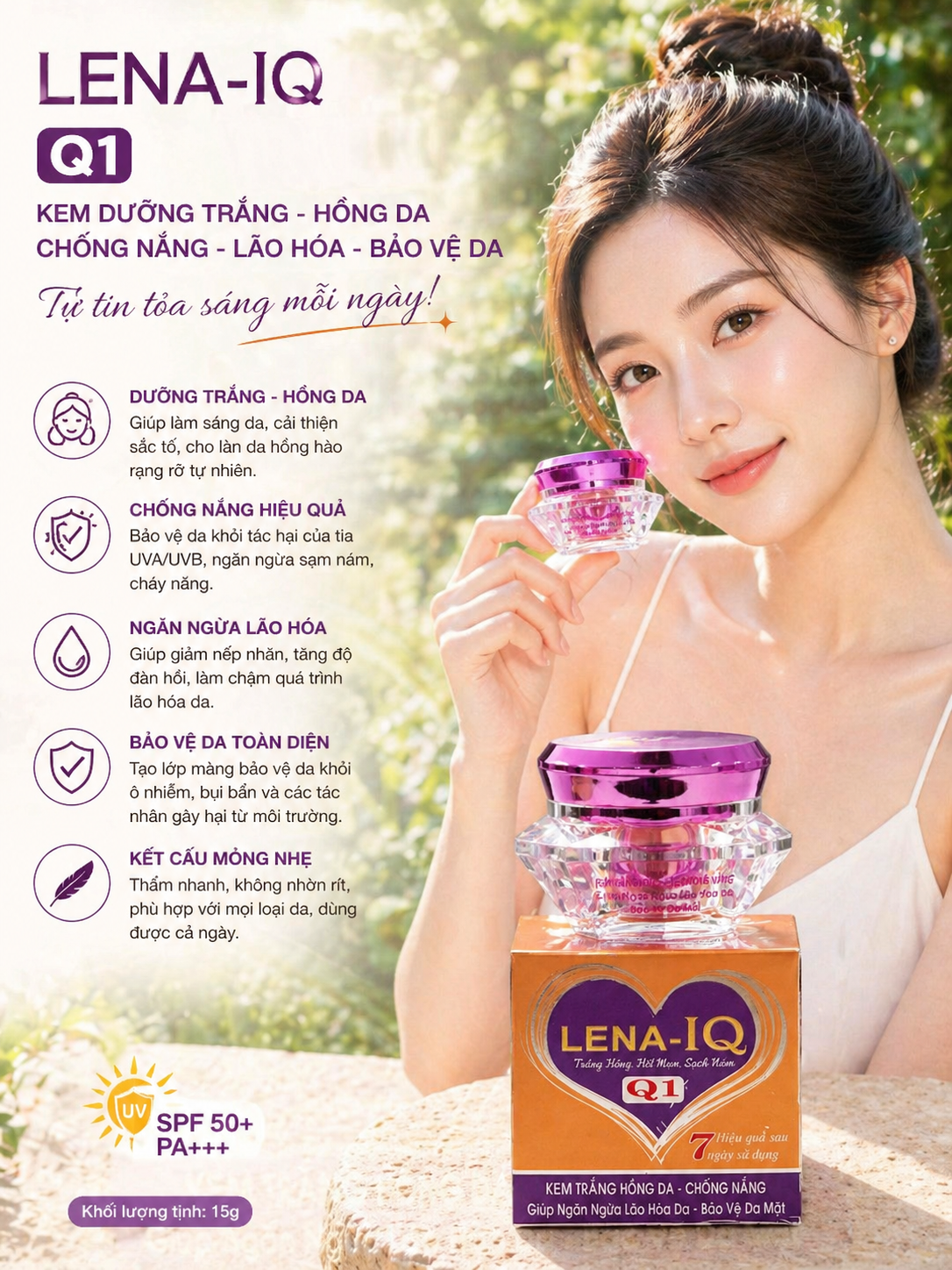 Kem LENA-IQ Q1 dưỡng trắng - Hồng da - Chống nắng - Lão hóa - Bảo vệ da (20g)
