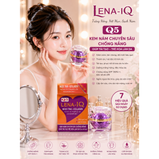 Kem nám chuyên sâu - Chống nắng - Giúp tái tạo - Trẻ hóa làn da LENA-IQ Q5 (30g) giúp đánh bật nám hiệu quả, ngăn chặn sự hình thành nám trong tương lai, dưỡng trắng, tái tạo làn da mới, giúp phục hồi da hư tổn, hống nắng, bảo vệ da trước tác động từ môi trường, mang lại làn da trắng sáng, mềm mại, mịn màng, săn chắc, khỏe mạnh. Đặc biệt có thể dùng làm kem trang điểm hằng ngày.