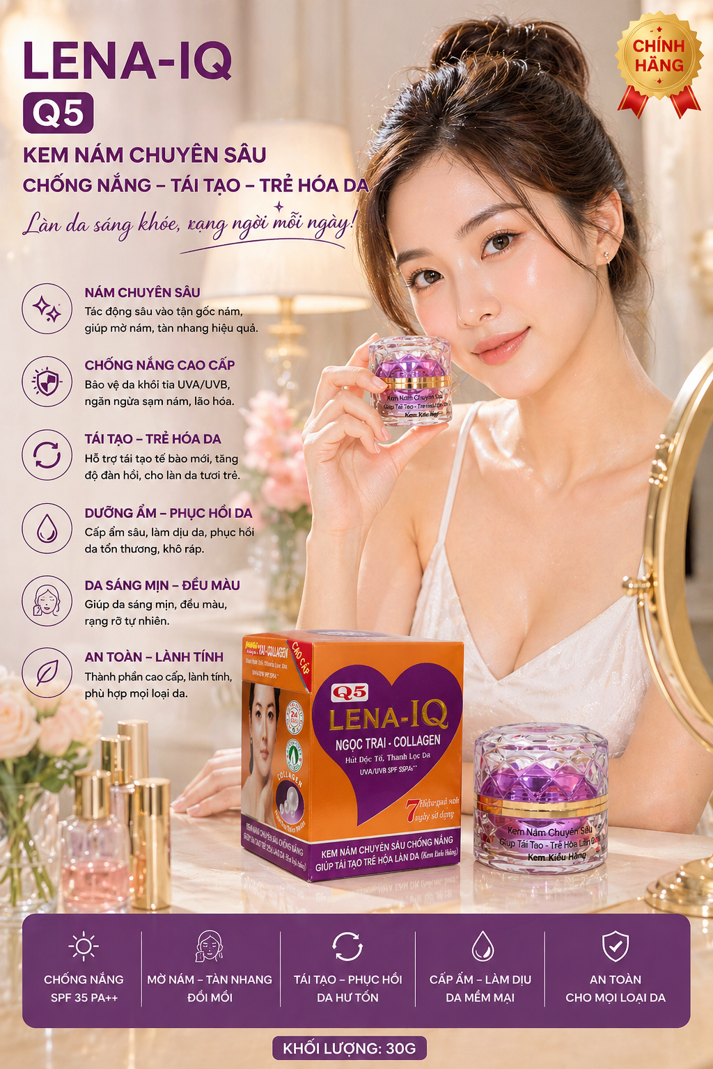 Kem nám chuyên sâu - Chống nắng - Giúp tái tạo - Trẻ hóa làn da LENA-IQ Q5 (30g)