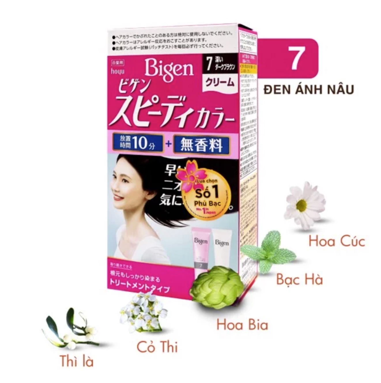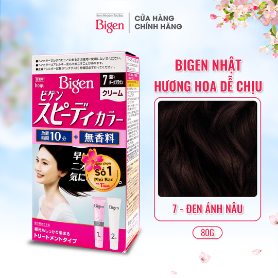 Kem Nhuộm Tóc Bigen Speedy Color Cream còn gọi là Bigen Nhật, là dòng thuốc nhuộm nhập khẩu & sản xuất 100% từ Nhật Bản, mang đến giải pháp nhuộm tóc an toàn với thành phần chiết xuất từ thảo dược thiên nhiên. Bigen Nhật phủ bạc hoàn hảo với công thức chuyên biệt dành cho tóc bạc, giúp phủ bạc từ gốc đến ngọn. Kết hợp cùng 06 loại thảo dược thiên nhiên: hoa bia, thì là, bạc hà, cỏ thi, hoa cúc, tầm gửi giúp nuôi dưỡng tóc ngay và sau khi nhuộm, ngăn ngừa tình trạng khô xơ, gãy rụng cho tóc luôn suôn mượt & chắc khoẻ.
