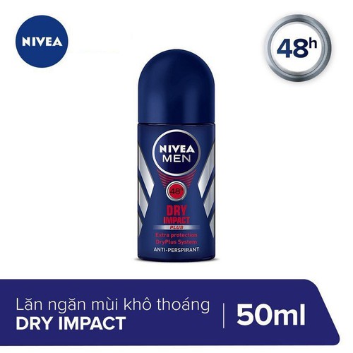 Lăn khử mùi khô thoáng cho nam Nivea Men Dry Impact với công thức muối nhôm* giúp giảm tiết mồ hôi và ngăn mùi hiệu quả đến 48 giờ**, cho cảm giác khô thoáng tức thì. Hương thơm nam tính mang đến cho bạn vẻ tự tin, quyến rũ suốt cả ngày. Thiết kế nhỏ gọn, tiện lợi mang theo mọi nơi.