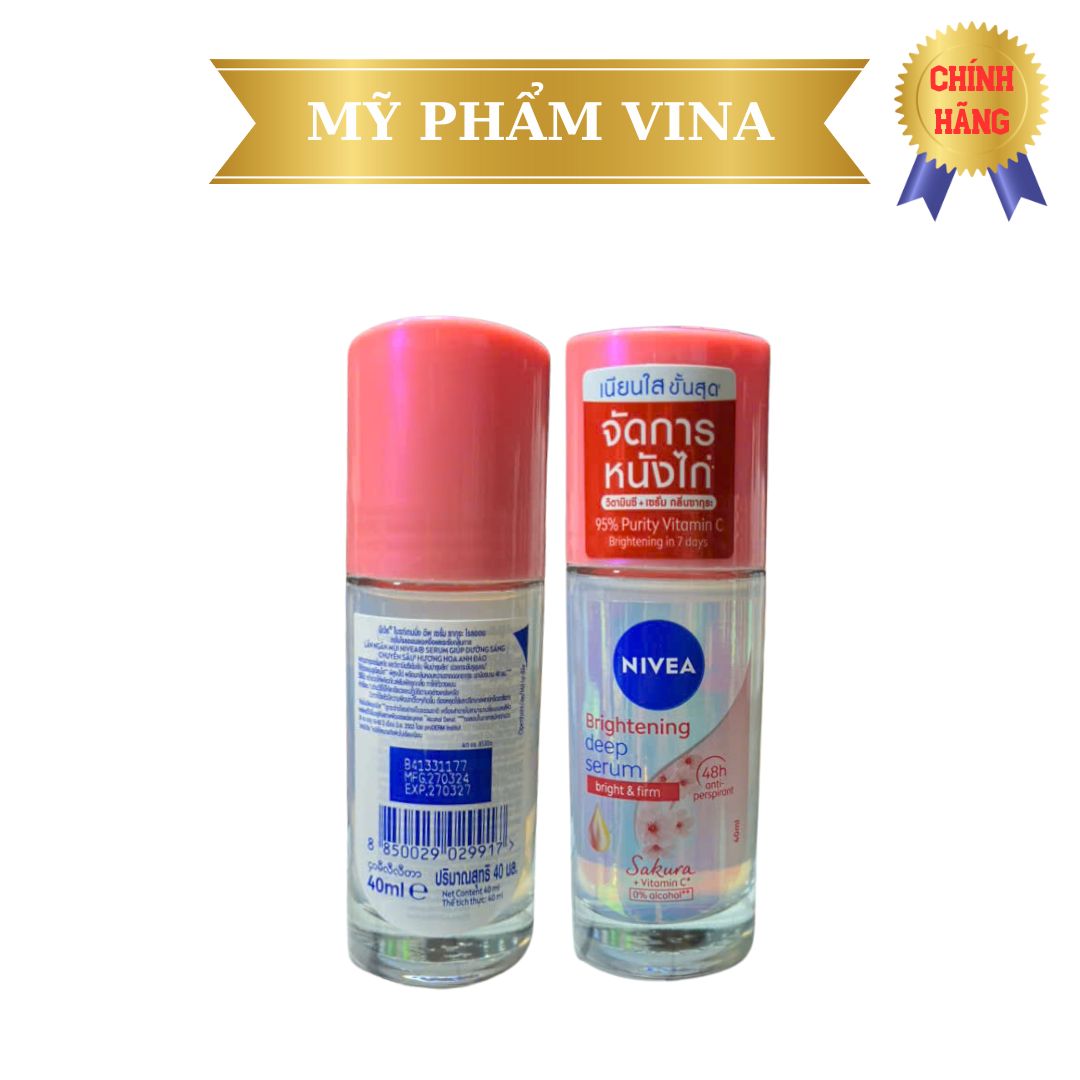 Lăn Ngăn Mùi Nivea Whitening Deep Serum Sakura 0% Alcohol Roll On Hương Hoa Anh Đào 40ml