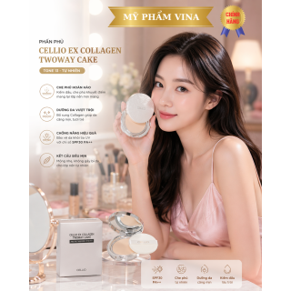 Phấn Phủ Cellio Ex Collagen Twoway Cake được sản xuất bởi công nghệ ưu việt, kết cấu phấn phủ cực kỳ mịn giúp bám trên da lâu mà không sợ trôi.