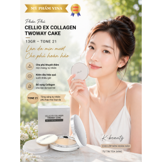 Phấn Phủ Cellio Ex Collagen Twoway Cake được sản xuất bởi công nghệ ưu việt, kết cấu phấn phủ cực kỳ mịn giúp bám trên da lâu mà không sợ trôi.