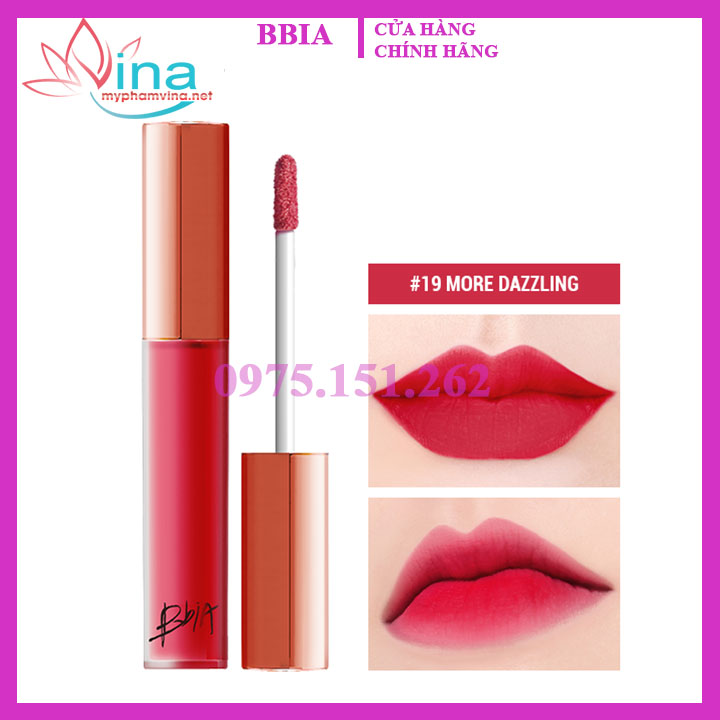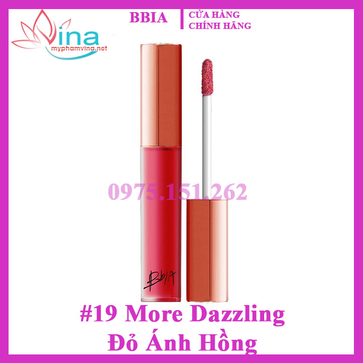 Son Kem Bbia Last Velvet Lip Tint #19 More Dazzling - Đỏ Ánh Hồng