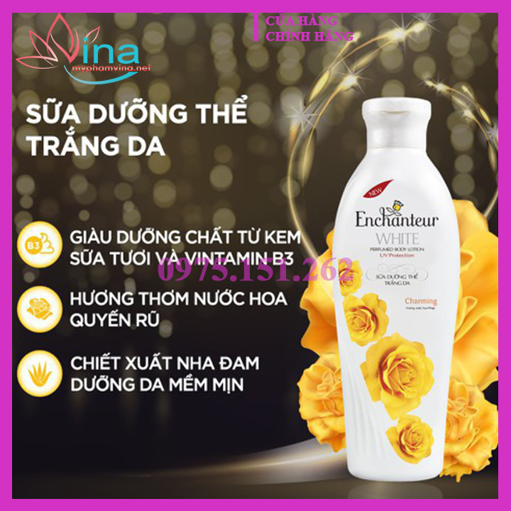 Sữa Dưỡng Thể Trắng Da Enchanteur Charming là sản phẩm dưỡng da toàn thân dạng sữa mang đến cho bạn làn da trắng sáng và mềm mịn.