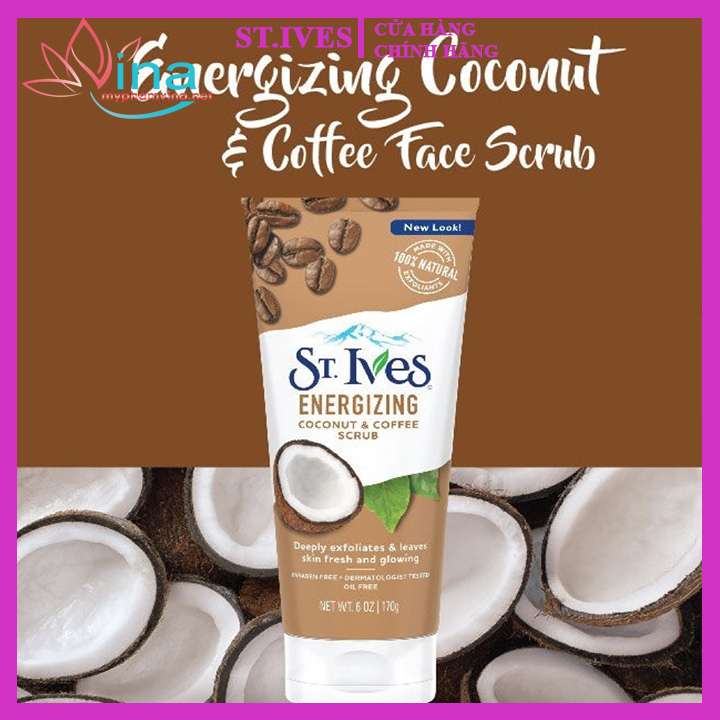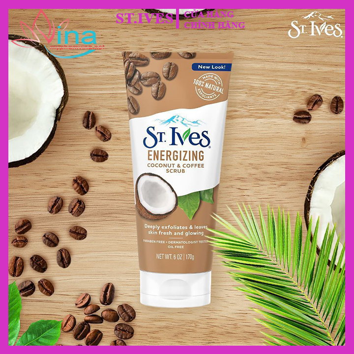 Sữa Rửa Mặt Tẩy Tế Bào Chết Chiết Xuất Dừa Và Cà Phê ST.IVES Energizing Coconut & Coffee Scrub là sữa tẩy tế bào chết thuộc thương hiệu ST.IVES là sản phẩm chăm sóc da thích hợp với những làn da khô, xỉn màu và mệt mỏi. Sữa Rửa Mặt Tẩy Tế Bào Chết Dừa & Cafe St.Ives. Sản phẩm không làm đổ dầu và không chứa Paraben, an toàn và không gây kích ứng