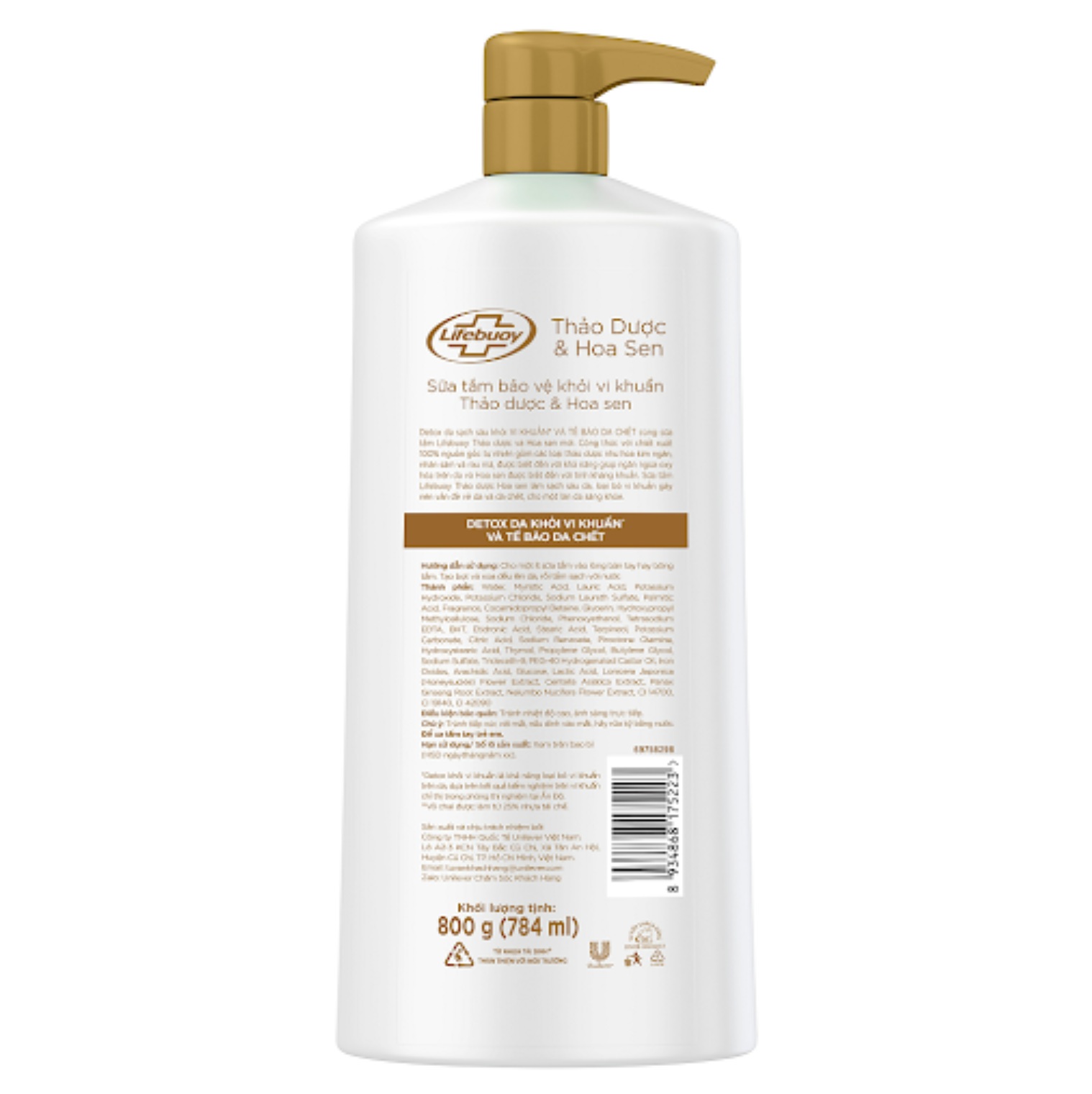 Sữa Tắm Detox Và Sạch Sâu Khỏi Bụi Mịn Pm2.5 Lifebuoy Detox Thảo Dược & Hoa Sen 800gr