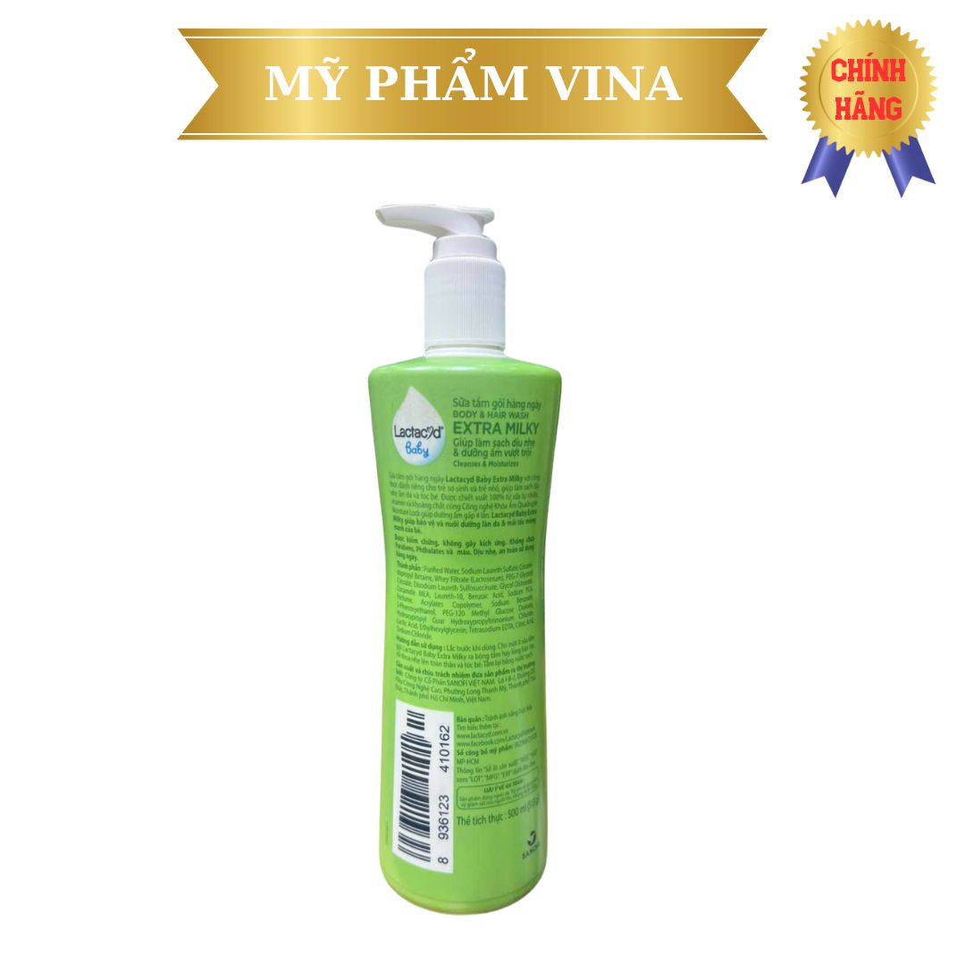 Sữa tắm gội Lactacyd Baby Extra Milky bảo vệ da và tóc cho bé chai 500ml là một sản phẩm của Sanofi tập đoàn chăm sóc sức khỏe đa dạng hàng đầu thế giới, thích hợp cho trẻ sơ sinh, giúp tắm gội sạch sẽ cho trẻ cả tóc và toàn thân bé mà không làm khô da bé. Với công thức không cay mắt, sản phẩm nhẹ dịu như nước tinh khiết nên hầu như không gây kích ứng cho da và mắt bé.