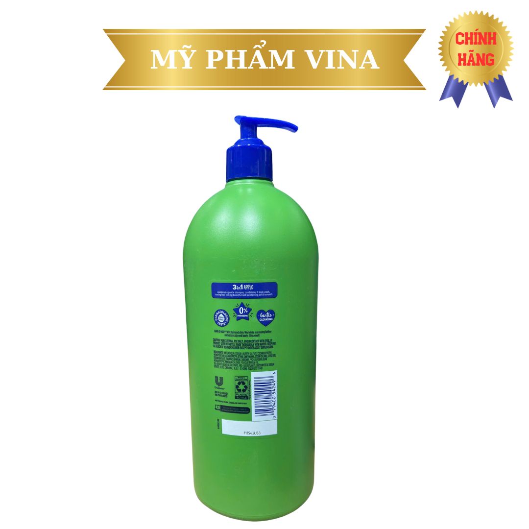 Sữa Tắm Gội Xả Suave Kids Hương Táo 1.18l đến từ thương hiệu mỹ phẩm chăm sóc da của Mỹ Suave. Sản phẩm nổi bật với công dụng 3 trong 1, vừa là sữa tắm, vừa là dầu gội và vừa là dầu xả, đem đến công dụng làm sạch nhanh chóng, hiệu quả cho làn da và tóc của bé. Sữa tắm sử dụng công thức có chứa các thành phần chiết xuất từ thiên nhiên, giúp bổ sung các dưỡng chất, dưỡng tóc mềm mượt, dưỡng da thêm khỏe mạnh. Thêm vào đó, vitamin E và Glycerin giúp dưỡng ẩm, cho da bé luôn mềm mượt, ngăn ngừa tình trạng da khô, thiếu ẩm.