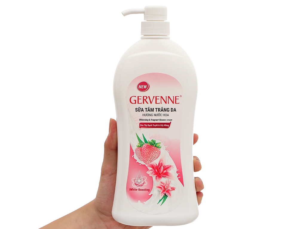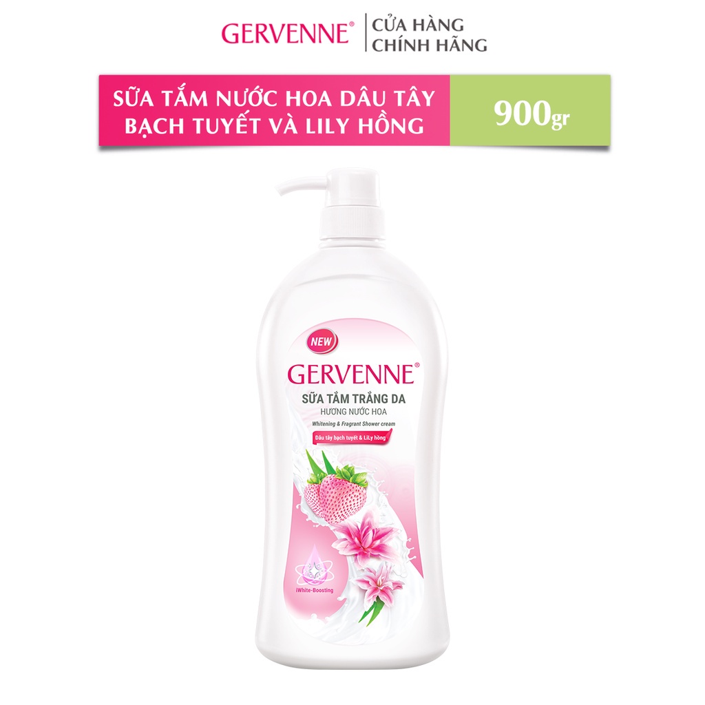 Sữa tắm trắng da hương nước hoa Gervenne Dâu Tây Bạch Tuyết và Lily Hồng 900gr