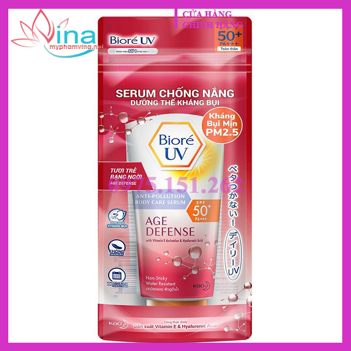 Age Defense (Kháng bụi - Dưỡng ẩm vượt trội) (50ml; 150ml): Hoạt chất Hyaluronic Acid cùng Vitamin E giúp dưỡng ẩm, giúp da luôn mềm mại, sáng bóng.
