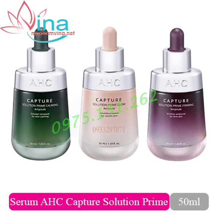 Tinh chất AHC Capture Solution Prime Ampoule có 3 loại là Calming, Firming, Glow phù hợp với các nhu cầu chăm sóc da khác nhau. Thành phần giàu dưỡng chất và phù hợp với các nhu cầu chăm sóc da khác nhau giúp bạn gái dễ dàng lựa chọn.