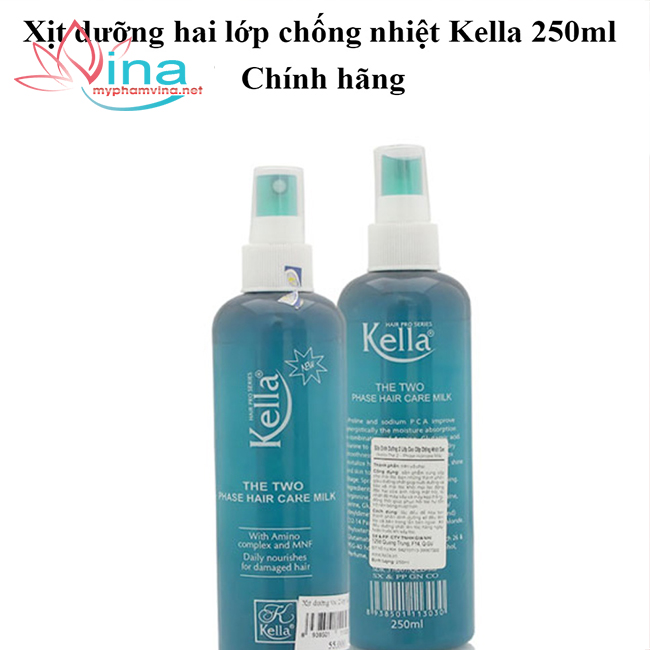 Xịt dưỡng 2 lớp cao cấp chống nhiệt cao Kella The Two Phase Hair Care Milk cung cấp cho mái tóc những thành phần giàu dưỡng chất giúp nuôi dưỡng và bảo vệ mái tóc khỏi mọi tác động độc hại của ánh nắng mặt trời, nhiệt độ máy sấy,… đồng thời giúp phục hồi tóc hư tổn trở nên bóng mượt hơn.